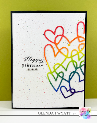 Glenda, thanks for the fun challenge. I don't use splatters very often, so was nice to do something different. Love your rainbow hearts and splatter. So cute.